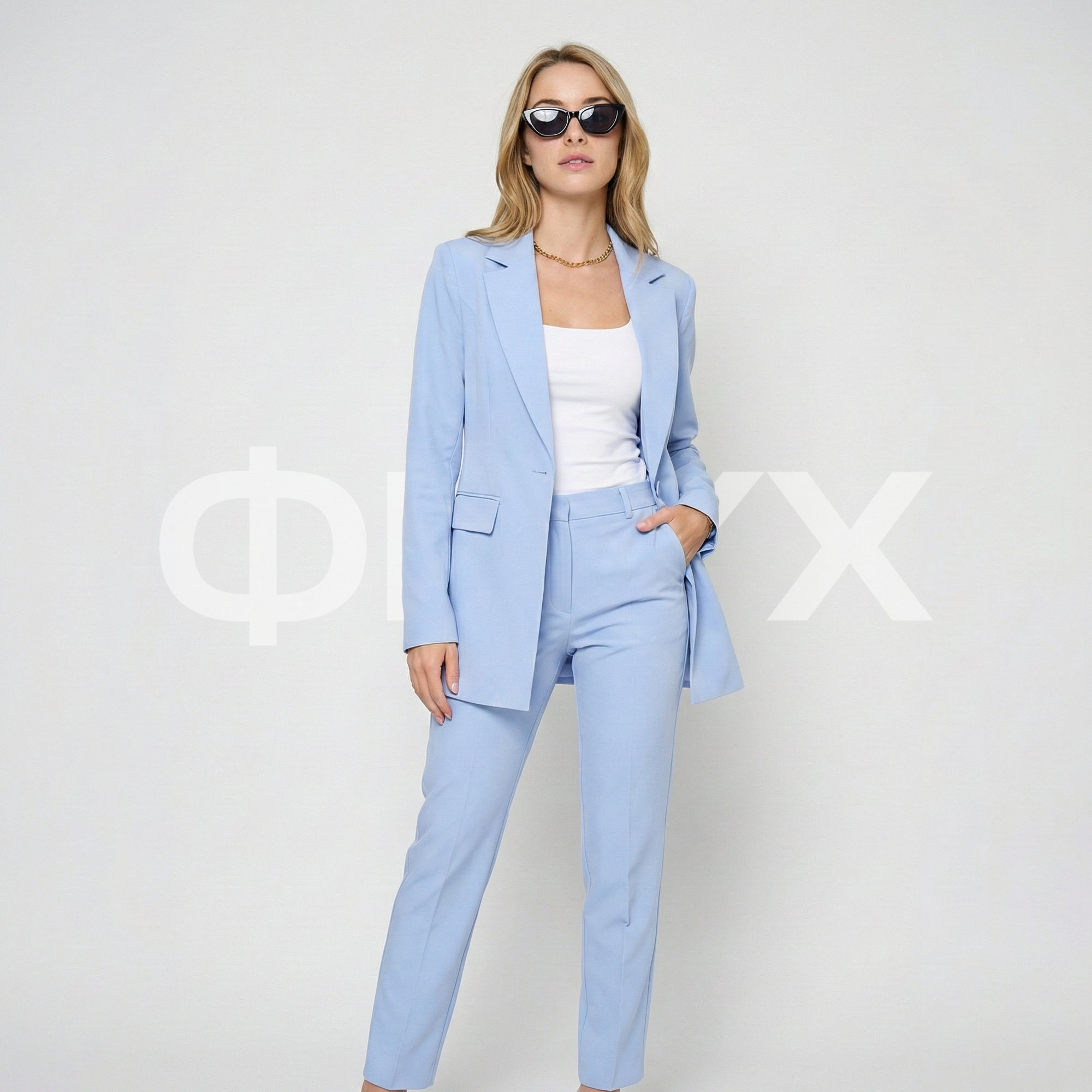 ФNYX Damen-Klassiker-Ein-Knopf-Anzugset – Taillierter Blazer & schmal geschnittene Hose (Babyblau)