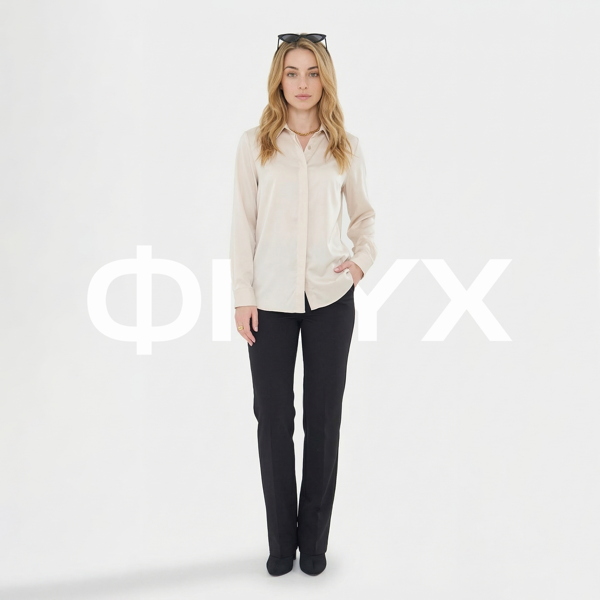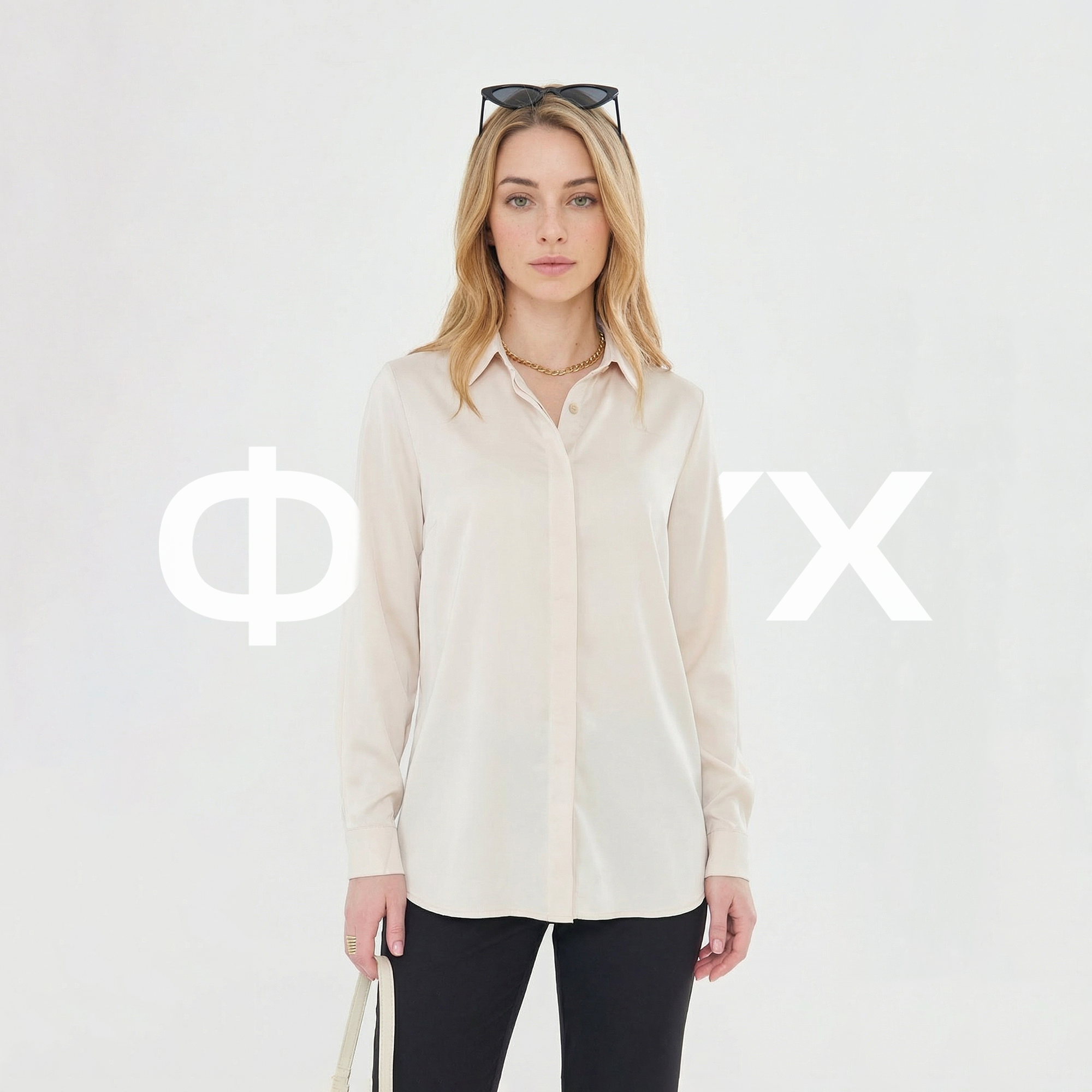 ФNYX Women’s Classic Satin Shirt – Long Sleeve Cream Blouse
