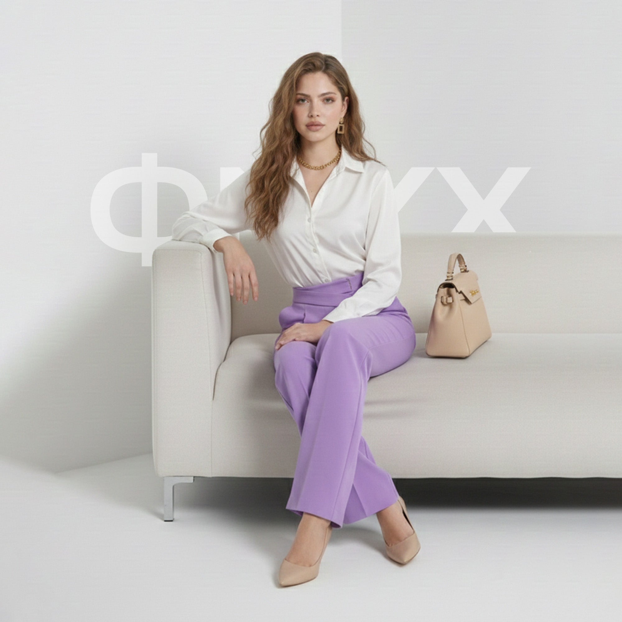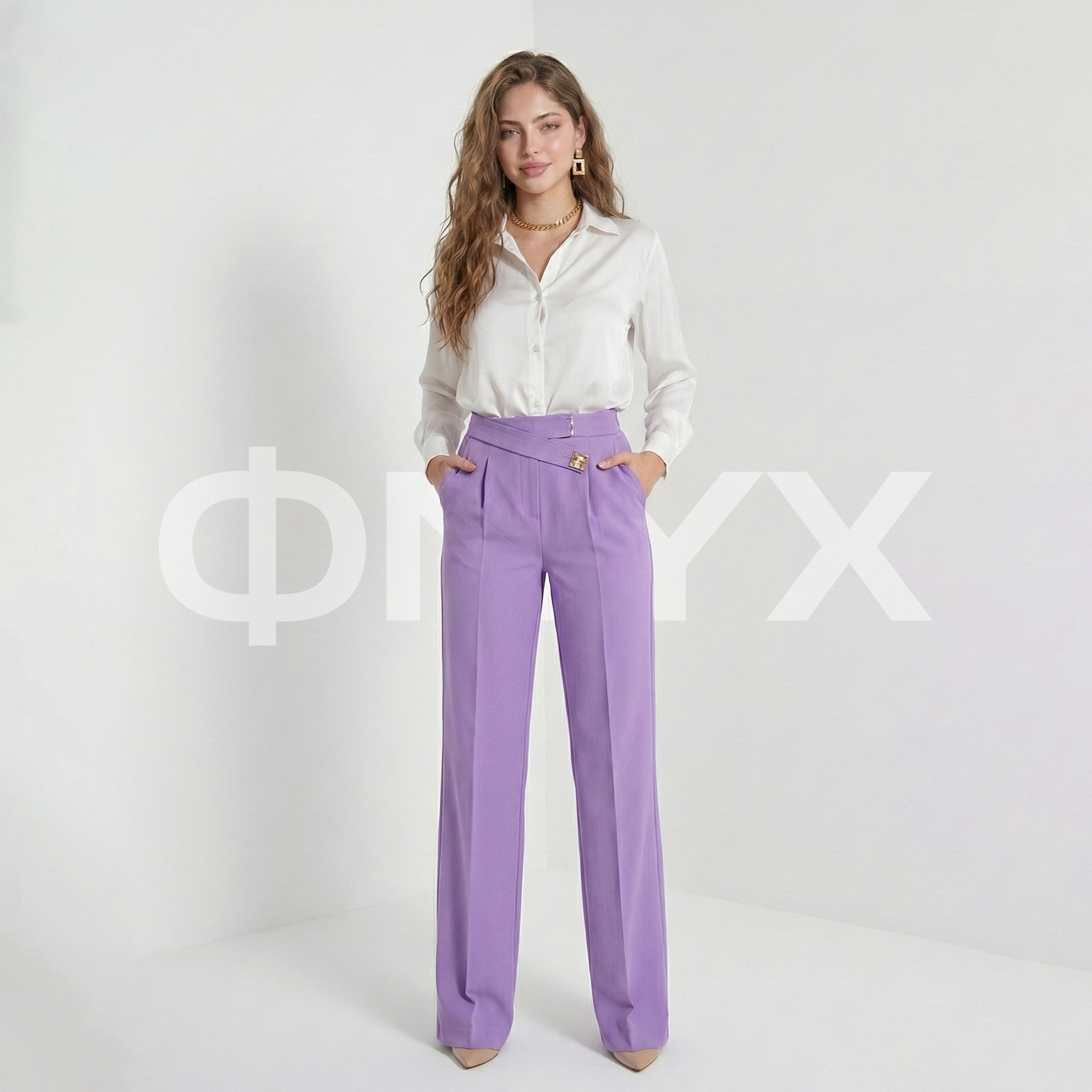 Finished in a soft lilac tone, this versatile design pairs effortlessly with shirts, blouses, and blazers for a polished, contemporary outfit.